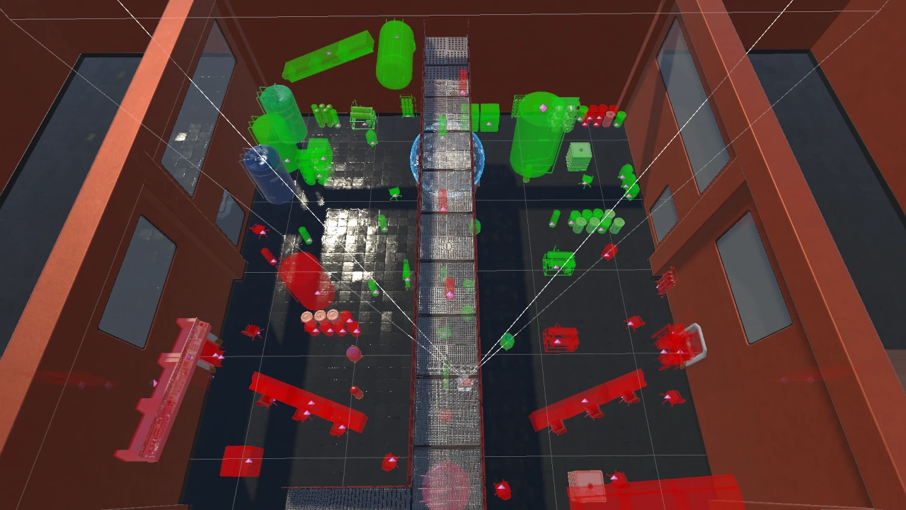 All Objects are rendered onto a render texture with their ID encoded as a color. Then the Texture is searched for all IDs. To speed up the process, the image gets presorted with a compute shader.